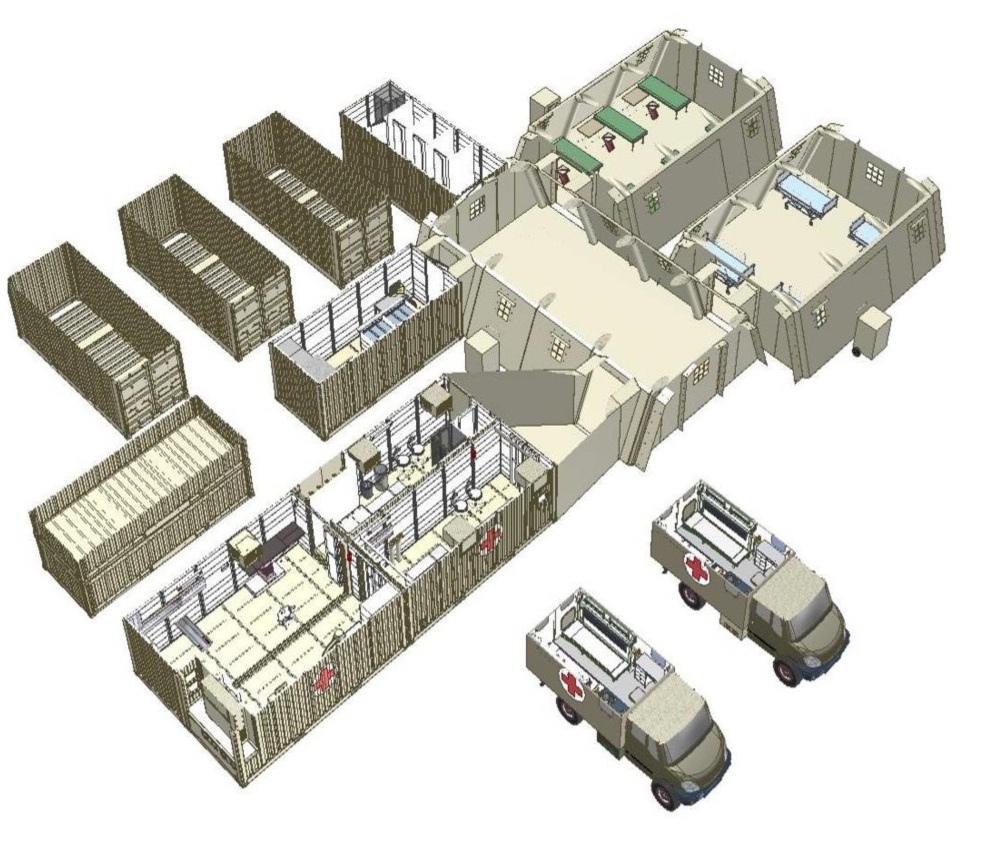 Operation unit consists of field hospital facility or mobile operation complex.